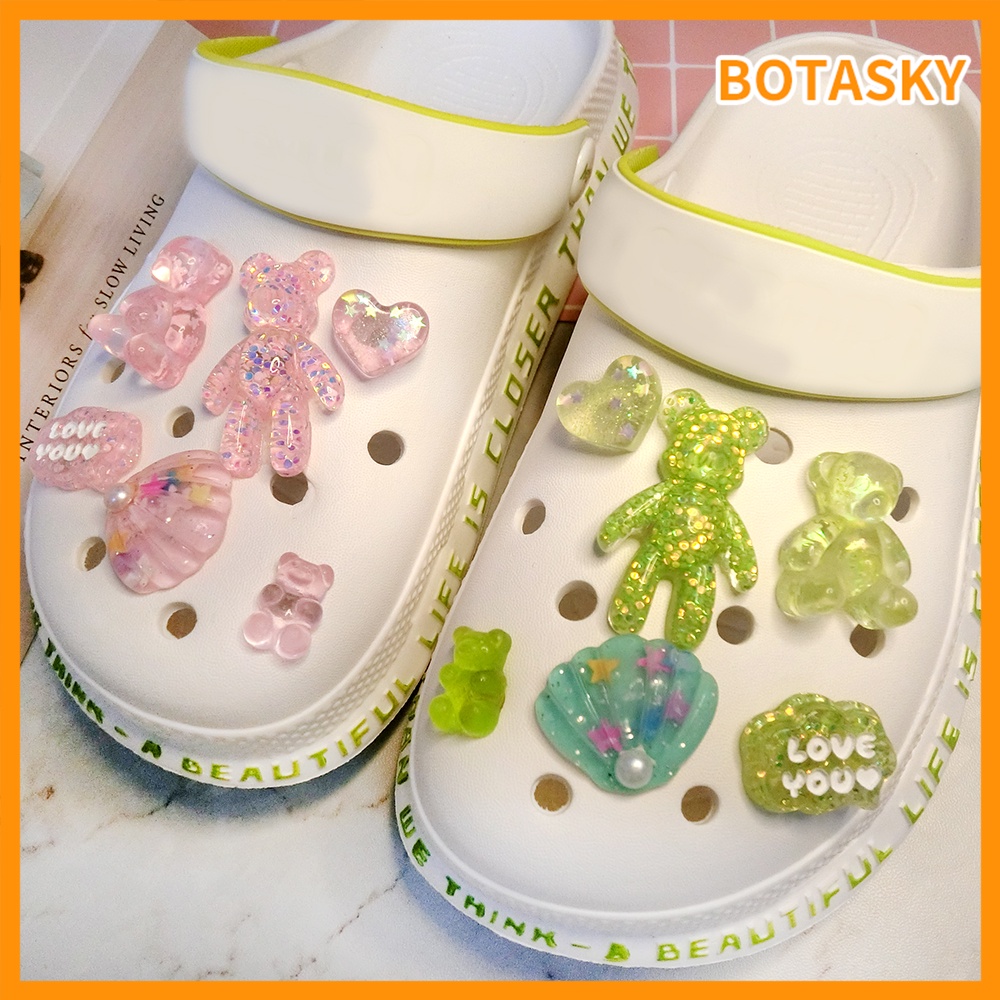 Giới thiệu 1 Bộ 6 Phụ Kiện Trang Trí Giày Crocs Hình Chú Gấu Đính Kim Sa Xinh Xắn