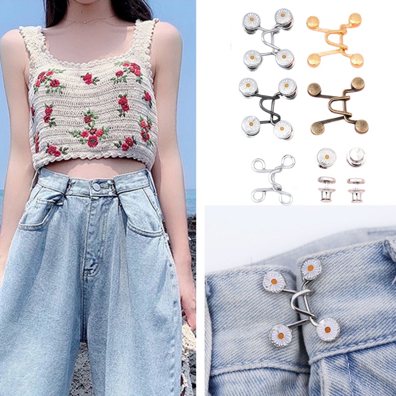 Giới thiệu 1 Bộ Nút Kim Loại Hình Hoa Cúc 27 / 32mm Chất Lượng Cao Có Thể Điều Chỉnh