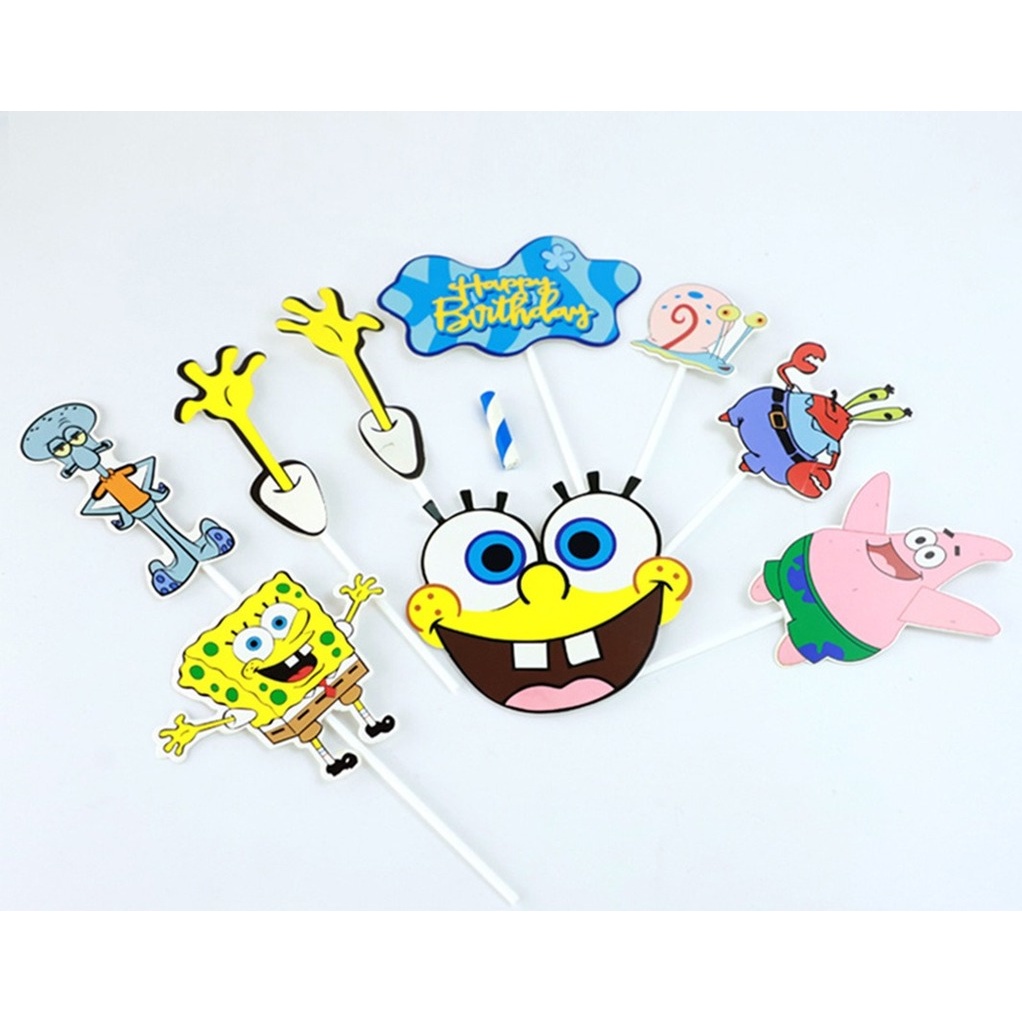 1 bộ que cắm trang trí bánh kem chủ đề hoạt hình SpongeBob cho tiệc sinh nhật bé