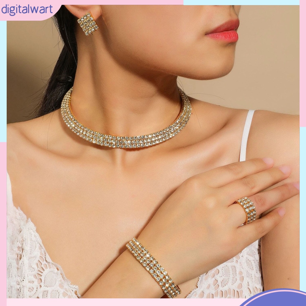 Giới thiệu 1 Bộ Trang Sức Nhẫn Vòng Tay Bông Tai Đá Sáng Lấp Lánh Cho Đám Cưới
