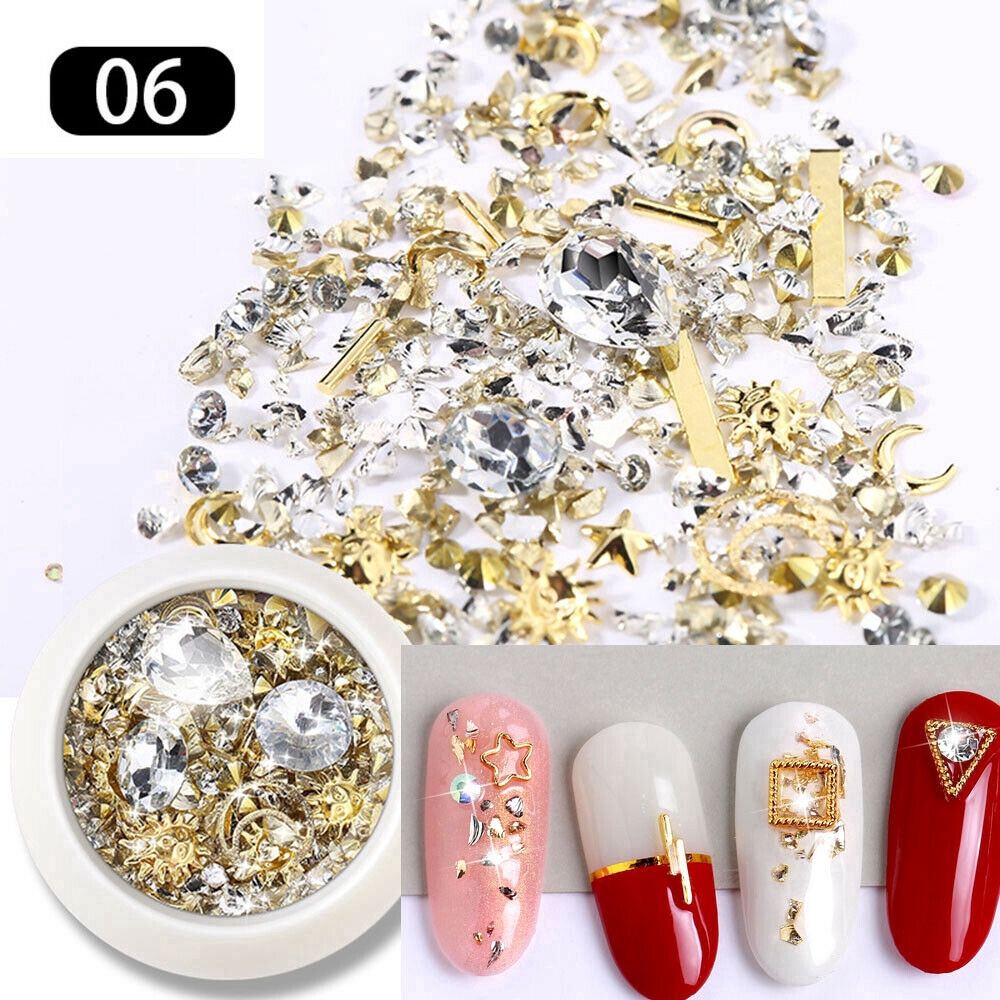 Giới thiệu 1 Box Glitter Metal Nail Rhinestones/ Multicolor Crystal Glass Diamonds Nail Art Charms/ DIY Colorful Manicure Decoration