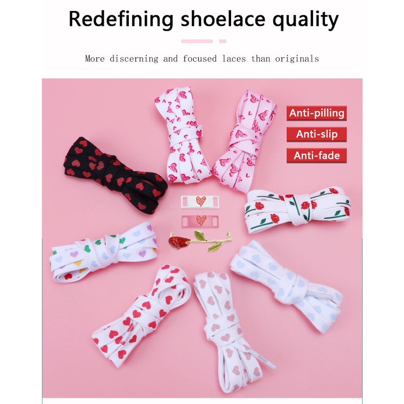 Giới thiệu 1 Cặp Dây Cột Giày Canvas Họa Tiết Trái Tim Hoa Hồng Dễ Thương Cho Nữ AF1/AJ