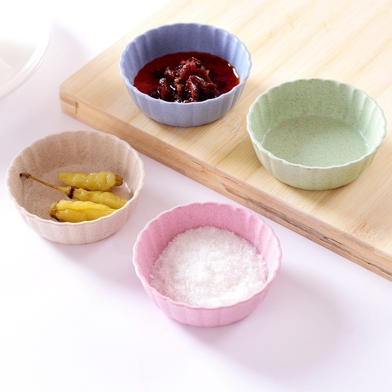 Describe Wheat straw seasoning dish, Japanese creative vinegar dish soy sauce dish, kitchen moisture-proof seasoning dish plastic small bowl. Delicate and compact, beautiful and practical. Made of wheat straw, it is healthy and safe to use. You can put oil, salt, sauce, vinegar and other seasonings to enjoy the food beautifully. The surface is smooth, it can be cleaned after washing, and it is convenient and quick to clean. The edges are polished smoothly and do not hurt your hands. The bottom is heightened, which is stable and non-slip.