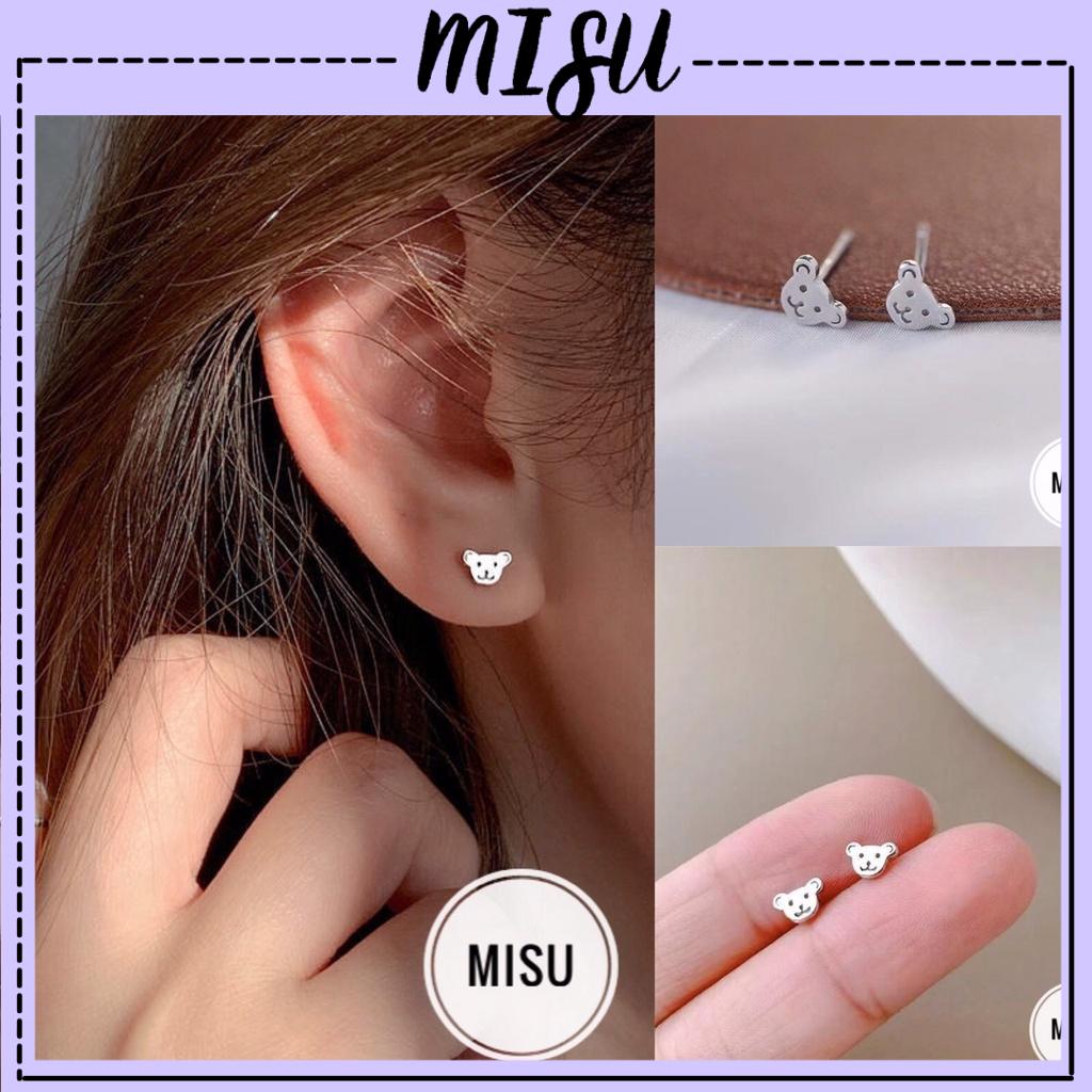 💕💕 WELCOME TO MISUSHOP💕💕 [1 chiếc] Bông Tai, Khuyên Tai Bạc Hình Mặt Gấu Mini Siêu Dễ Thương, Xinh Xắn - Misu Shop [phụ kiện]
