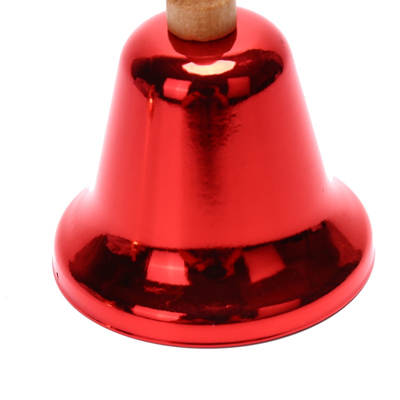 Product advantages: Simple handbell design, wooden handle, solid color bell. The hand bell made a sound by shaking, and there were metal balls in it, making a crisp, loud sound. Multi-purpose rattle can be used as various signal bells for dinner bells, class start, pet training, wake up someone, etc. Electroplating process, polished and smooth, not easy to fade, not easy to fall off and rust, easy to clean, just wipe with a cloth. Christmas can be used to attract children's attention, but also as a prop to attract guests.