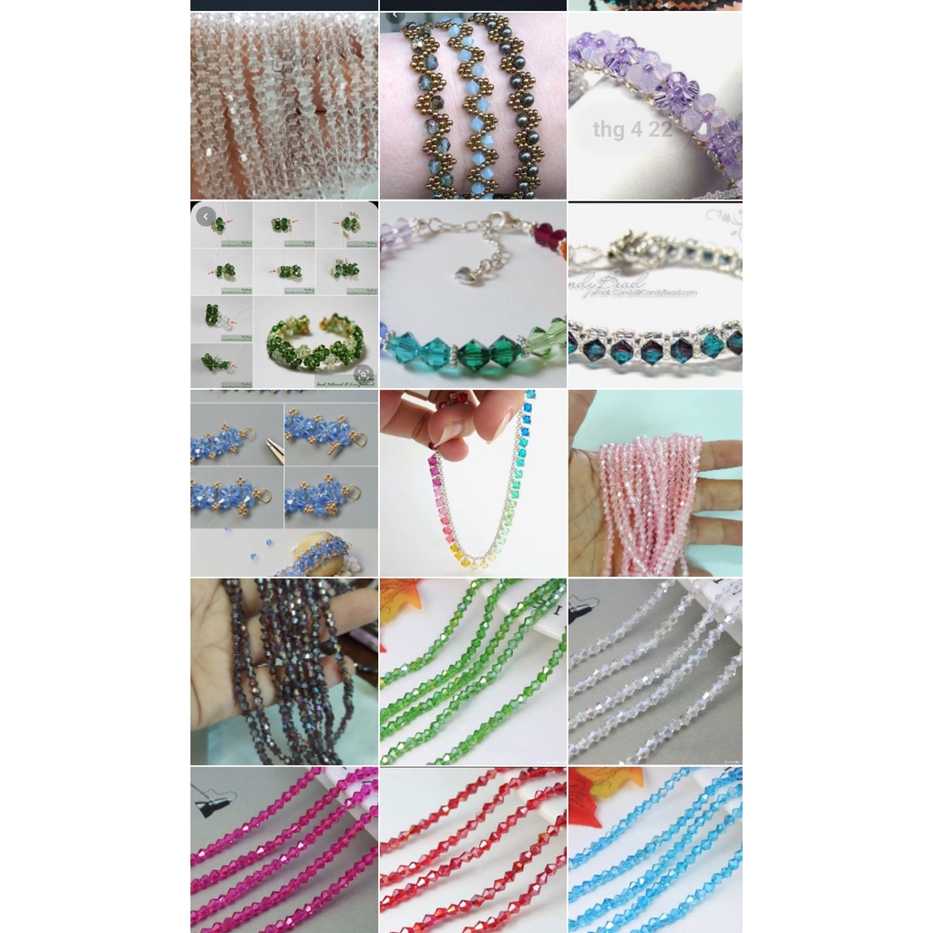 Giới thiệu 1 Dây Pha Lê Hình Nón (thoi) 4mm hạt cườm làm vòng tay 96 viên