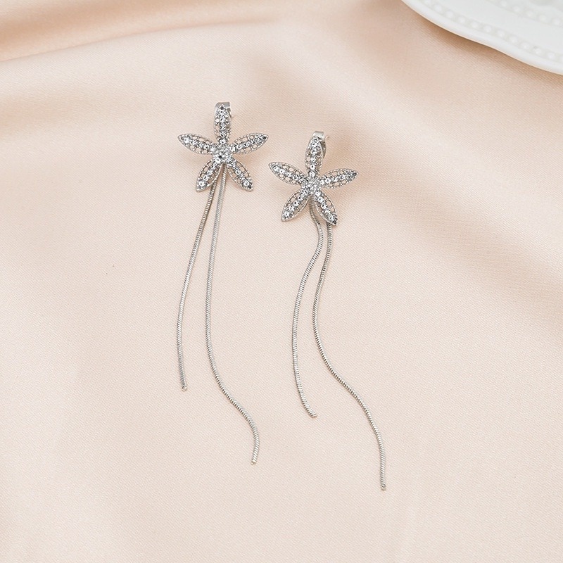 Mô tả: Tên sản phẩm: Bông tai hoa năm cánh đính kim cương Phong cách thời trang Mô hình hóa: năm cánh hoa Màu sắc: vàng, bạc Các tình huống áp dụng: hẹn hò, tiệc tùng, tiệc tùng, kết hợp thời trang, cuộc sống hàng ngày, v.v. Chất liệu: hợp kim, kim cương giả Kích thước: chiều dài khoảng 8cm Số lượng: 1 cặp