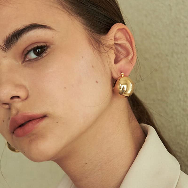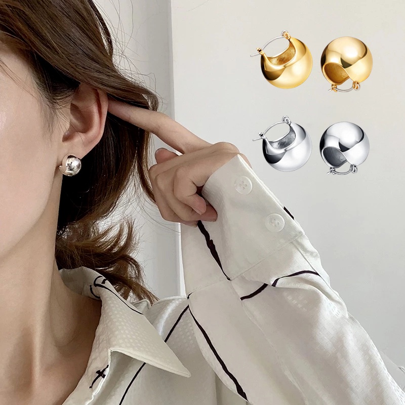 Giới thiệu 1 Đôi Bông Tai Hình Quả Cầu Kim Loại Màu Vàng/ Bạc Đơn Giản Dành Cho Nữ