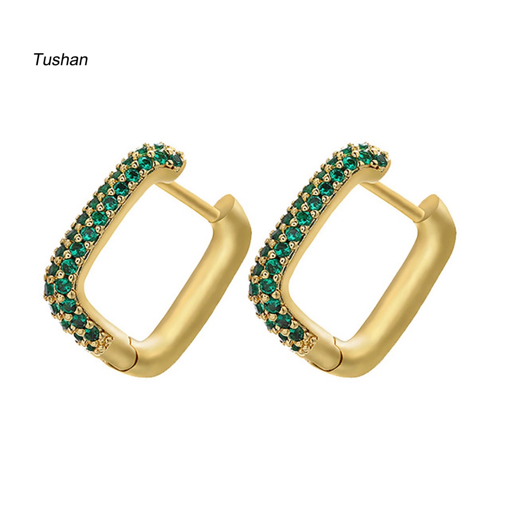 Giới thiệu 1 Đôi Bông Tai Hình Vuông Đính Đá Không Gây Dị Ứng Phong Cách Vintage Phương Tây