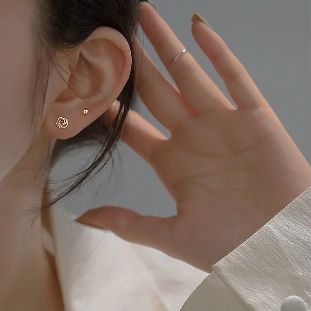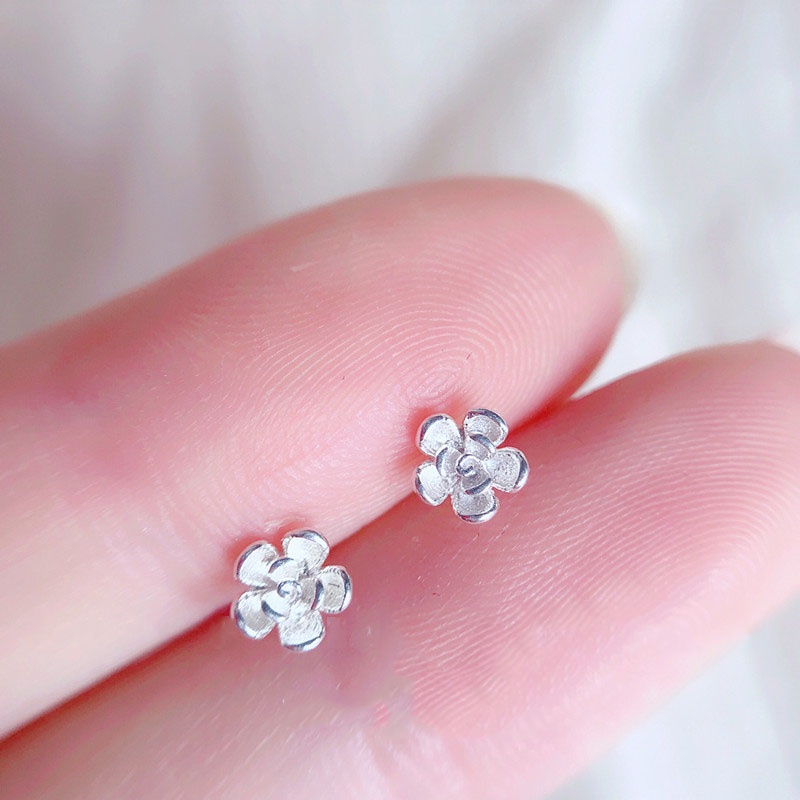 Giới thiệu 1 Đôi bông tai mạ bạc S925 hình hoa hồng đơn giản không gây dị ứng cho nữ