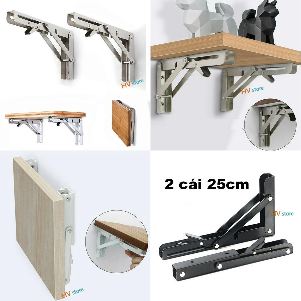 Giá sản phẩm là giá 1 đôi (2 chiếc) Giá đỡ gấp gọn là dụng cụ tuyệt vời giúp bạn có thể tối ưu hóa không gian nội thất. Giúp bạn có thể sắp xếp đồ đạc một cách gọn gàng nhất. Gấp gọn lại chỉ với thao tác gạt nẫy bằng tay cực đơn giản. (xem hình miêu tả) Thiết kế chắc chắn chịu lực từ 40-80kg (tùy cỡ của giá treo) Chất liệu: Thép sơn tĩnh điện màu trắng, đen, hoặc inox (khách tự chọn trong phân loại) Kích thước: 20cm/ 25cm/ 30cm/ 35cm/ 40cm/ 45cm/ 50cm . Mỗi kích thước sẽ có giá khác nhau, bạn bấm vào tên loại sẽ hiện ra giá ạ.