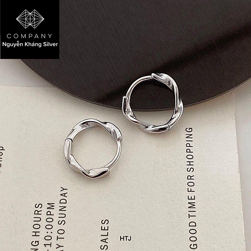 Giới thiệu 1 đôi khuyên tròn, chất liệu bạc, xoắn trơn không gắn đá, nhẹ nhàng, đơn giản