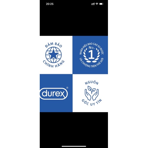 • Chất lượng Durex: 100% bao cao su Durex được kiểm nghiệm bằng điện tử cùng 5 công đoạn kiểm tra chất lượng, cũng như được kiểm nghiệm trên da.