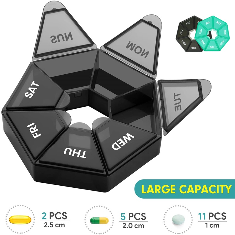 Mô tả: Vật liệu cấp thực phẩm, an toàn để giữ thuốc hàng ngày của bạn. Hộp đựng thuốc sẽ được đóng lại sau khi khóa và chụp an toàn sẽ giữ cho thuốc của bạn an toàn. Kích thước nhỏ gọn cho chuyến du lịch, dễ dàng mang theo và không mở ra. Bây giờ với máy rút thuốc hàng tuần, bạn sẽ không bao giờ phải lo lắng về việc quên thuốc của mình!