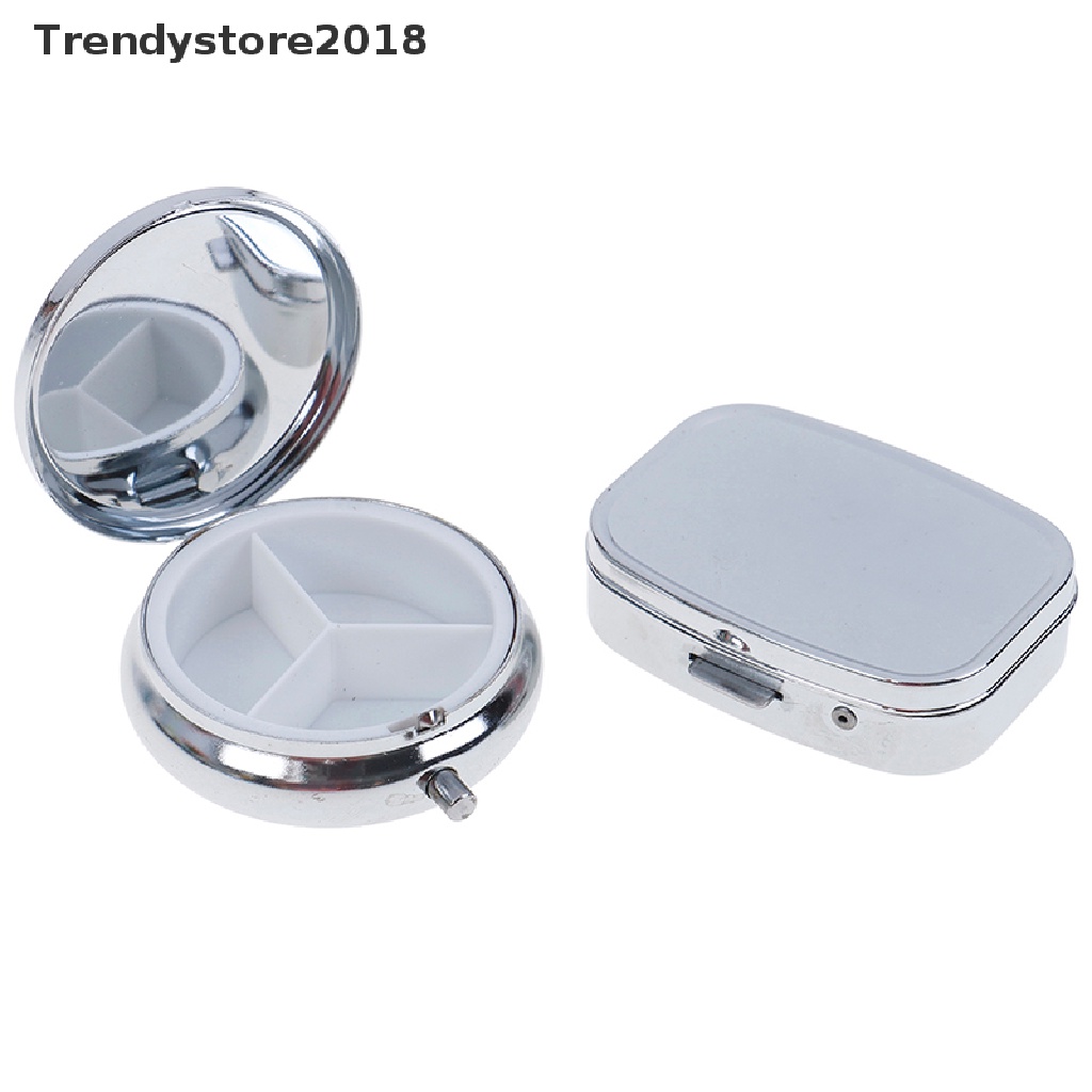 Giới thiệu 1 Hộp Đựng Thuốc Hình Tròn / Chữ Nhật Bằng Kim Loại Màu Bạc Thời Trang 2018 Ốp