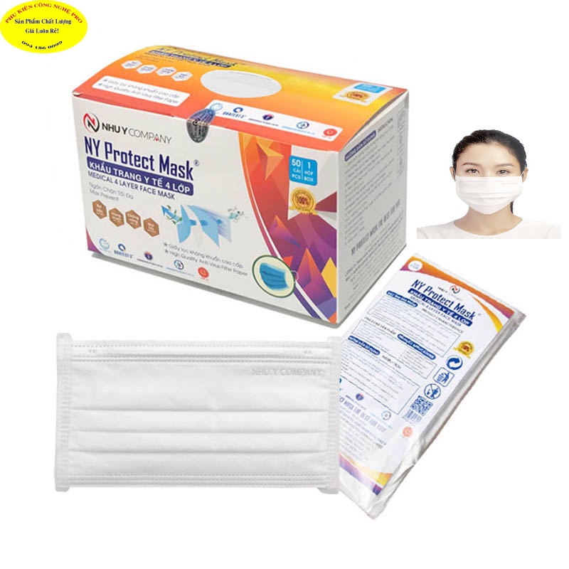 Sức Khỏe > Vật tư y tế > Bao tay và khẩu trang y tế > 1 HỘP Khẩu trang y tế 4 lớp NY Protect Mask Ngăn ngừa vi khuẩn Bụi bẩn Chống nắng Bảo vệ sức khỏe Thương hiệu Như Ý