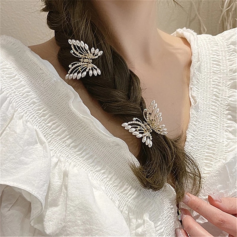 Giới thiệu 1 Kẹp Tóc Kim Loại Hình Bướm Đính Ngọc Trai Thời Trang Hàn Quốc