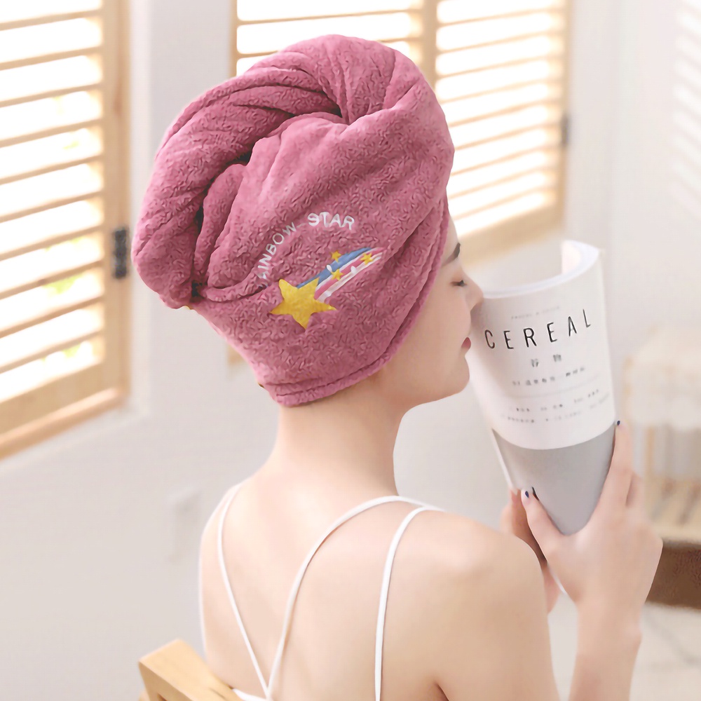 Giới thiệu 1 Khăn Tắm Dạng Mũ Bằng Vải Lông Cừu San Hô Mềm Mại Nhanh Khô Cho Nữ