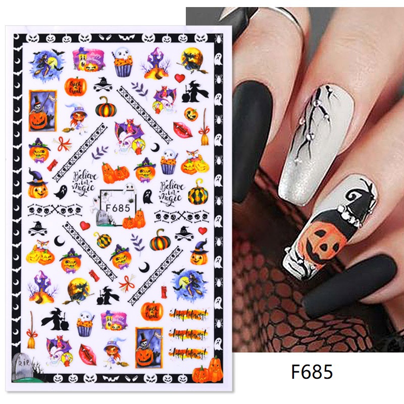 Giới thiệu 1 Miếng Dán Móng Tay 3D Chủ Đề Halloween Độc Đáo