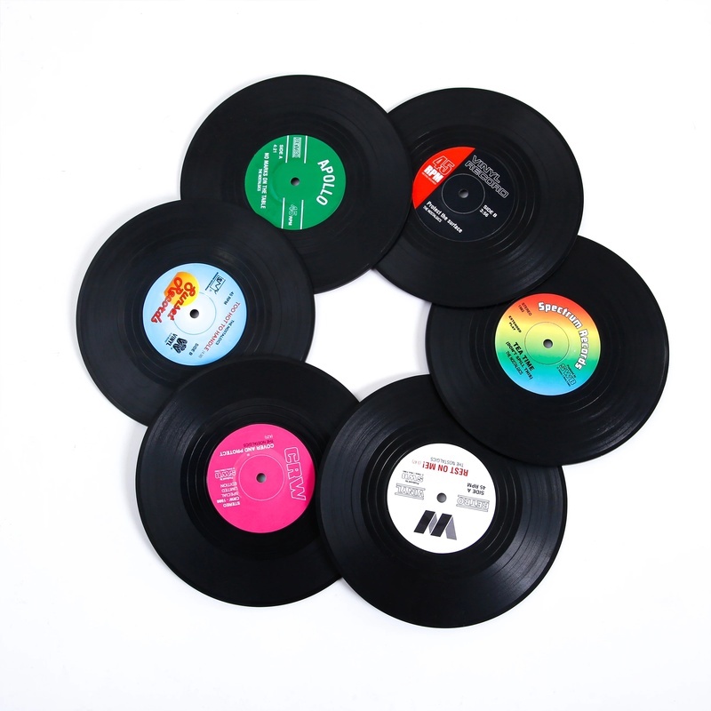 1pc Creative Heat-resistantNonslip Vinyl Record Table Mats/Cup Coaster for Home Decor,Kitchen Specification: Product name: record coaster Size: Diameter 10.5*0.2cm Material: Silicone Pattern: Classic Record Style: Random hair quantity: 1