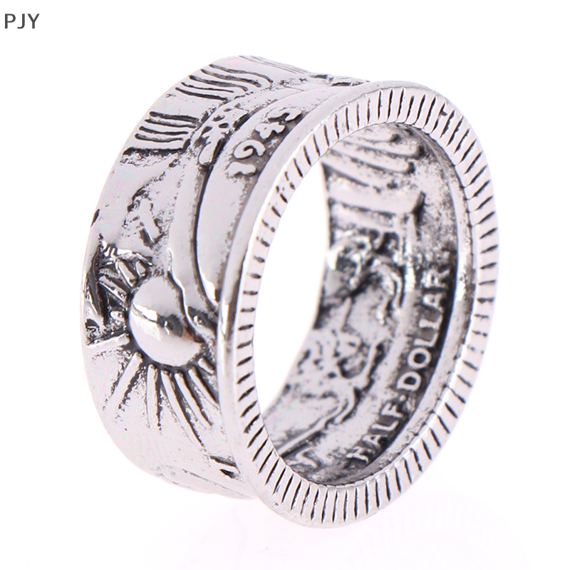 Giới thiệu 1 Nhẫn Mạ Bạc 1945 Khắc Hình Tiền Đô La Phong Cách Vintage
