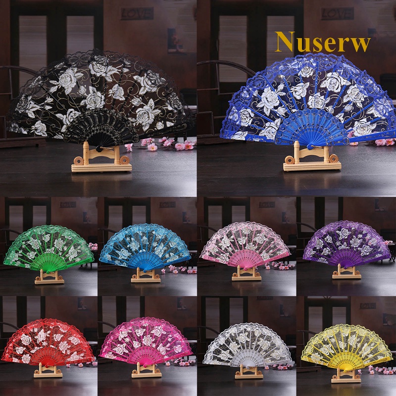 Giới thiệu 1 Quạt Xếp Phối Ren Hoa Hồng Phong Cách Trung Hoa