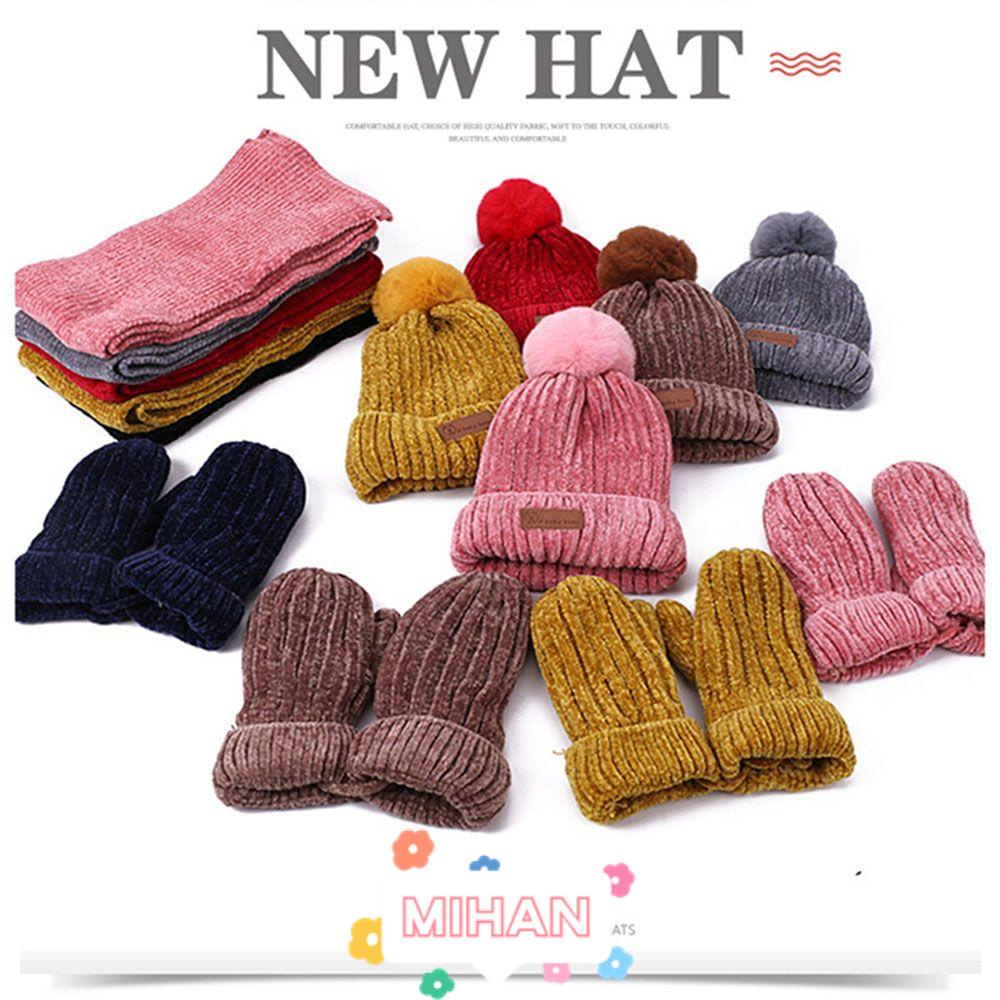 1 bộ găng tay mũ khăn Mũ Mũ Mũ Mũ Khăn quàng cổ Găng tay dệt kim Ấm áp Dày Dày Mùa thu Đông
