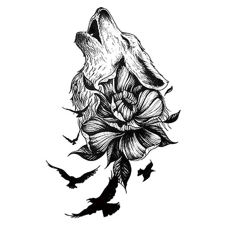 Giới thiệu 1 Tấm Hình Xăm Dán Cánh Tay / Ngực / Vai / Toàn Thân Chống Nước Hình Sói / Bông Hoa Nghệ Thuật