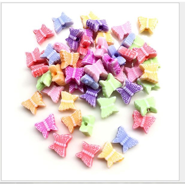 hạt nhựa cánh bướm dùng trang trí vòng hạt, cột tóc,làm đồ chơi, trang trí thủ công handmade.... sản phẩm này phù hợp cho các bé tập tành xỏ hạt , rèn luyện thêm đôi bàn tay khéo léo... mã #P117-14. Màu sắc: hỗn hợp màu.