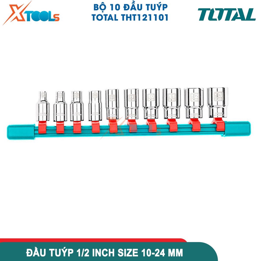 Dụng cụ và thiết bị tiện ích > Dụng cụ cầm tay > Đinh, vít & chốt > Bộ 10 đầu tuýp 1/2 inch TOTAL kích thước 10,11,12,13,14,15,17,19,21,24mm, đầu tuýp chất liệu 50BV30 [CHÍNH HÃNG][XTOOLS]