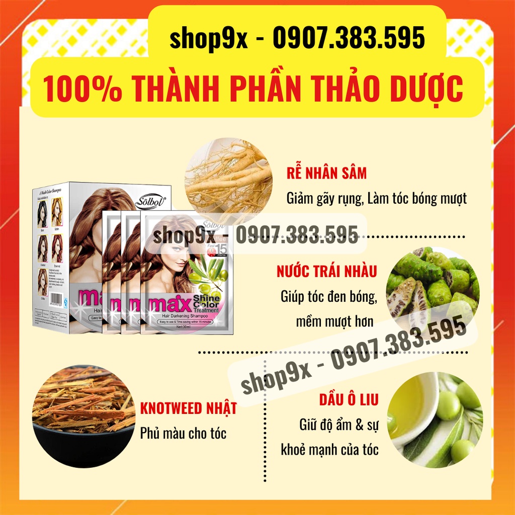 Giới thiệu 10 Gói Dầu Gội Nhuộm Nâu Tóc Hạt Dẻ Max Shine Color