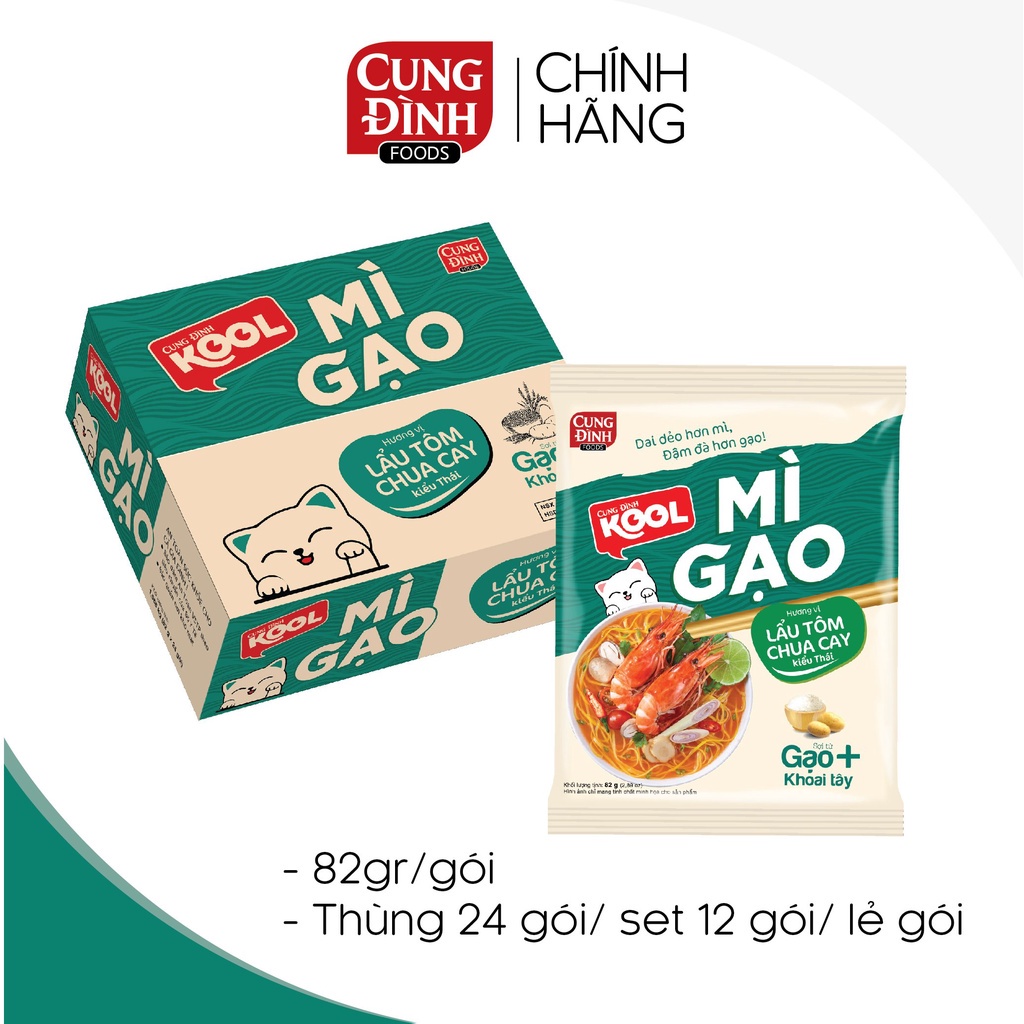 ên sản Phẩm: Mì gạo Cung Đình Kool hương vị Lẩu tôm Chua Cay kiểu Thái Gói 82gr