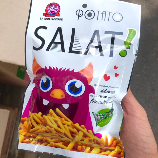 Sản Phẩm : SNACK SALAT POTATO Chuyên Sỉ Lẻ Bánh Kẹo Đồ Ăn Vặt Bách Hoá - Đại Lý SẢN PHẨM ĐƯỢC ĐÓNG GÓI TRONG THÙNG CHẮC CHẮN KHÔNG LO BẸP-VỠ 💢 Hàng HOT quán ăn vặt hay căng tin trường học. Phù hợp mọi lứa tuổi. Giòn tan thơm nức mũi khi vừa mở hộp. Hàng luôn có sẵn rẻ nhất thị trường.🎉🎉 ✨CHỈ CÓ TẠI TIỆM. ❗Lưu ý : HSD 6 tháng kể từ ngày sản xuất in trên bao bì -Để nơi thoáng mát . Luôn tuyển sỉ SDT 0326133607.☎️.