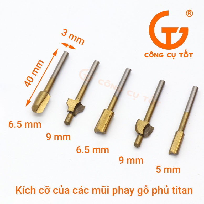 Chất liệu: Thép gió cao cấp phủ titan Tay cầm có đường kính 3 mm Tổng chiều dài mũi phay 40mm