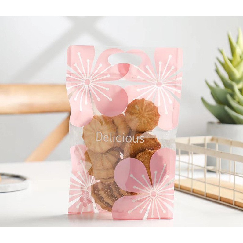 Giới thiệu 10 Túi zip đựng bánh ⚡ HÀNG LOẠI 1 ⚡ túi zip đựng bánh họa tiết hoa đào hồng sắc nét