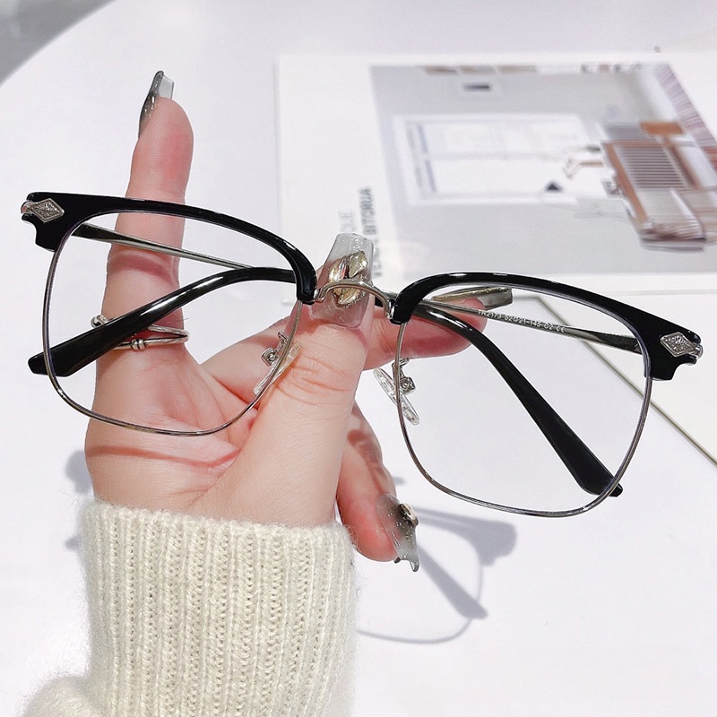 (+ 100 ~ + 400) Kính viễn thị, gọng lông mày thời trang mới chống ánh sáng xanh kính viễn thị, kính viễn thị nam nửa gọng kim loại