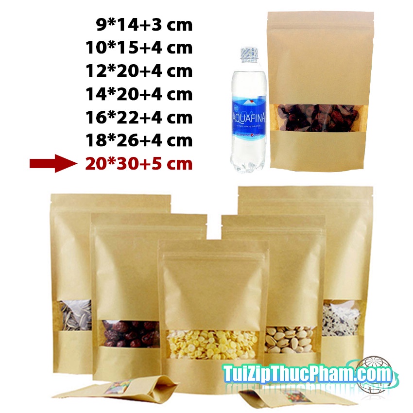 Nhà Cửa & Đời Sống > Đồ dùng nhà bếp và hộp đựng thực phẩm > Hộp, túi đựng thực phẩm > 100 cái 20x30+5cm Túi giấy Kraft có cửa sổ túi zip chuyên đựng thực phẩm chất lượng cao in logo theo yêu cầu