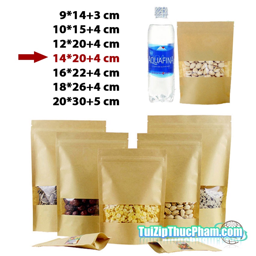 Nhà Cửa & Đời Sống > Đồ dùng nhà bếp và hộp đựng thực phẩm > Hộp, túi đựng thực phẩm > 100 cái túi zip giấy kraft 14x20+4cm có cửa tràn viền, zipper phủ PET CPP bên trong chống nước nhận in logo