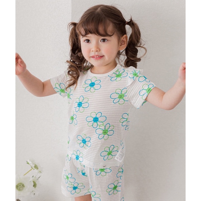 Giới thiệu [100% HÀNG NHẬP TỪ HÀN VỀ, HÀNG CÓ SẴN] Bộ ngắn tay mẫu Hoa Xanh Nền Trắng hãng Cordii mã CF136 rất dễ thương