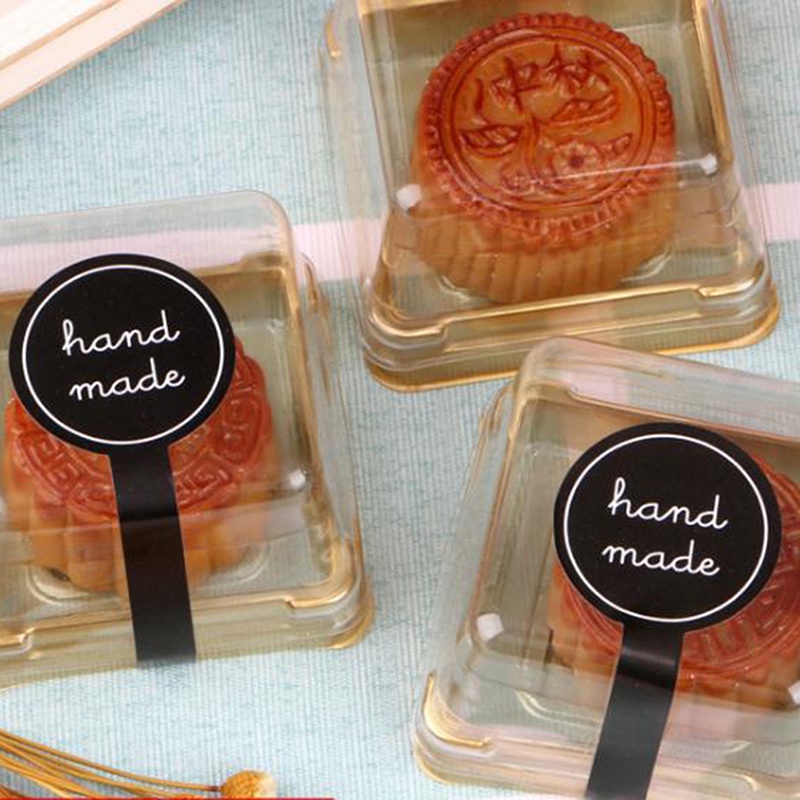 100PCS Adhesive Long Style "HAND MADE" Black Handmade Cake Packaging Sealing Label Kraft Sticker Baking DIY Gift Stickers