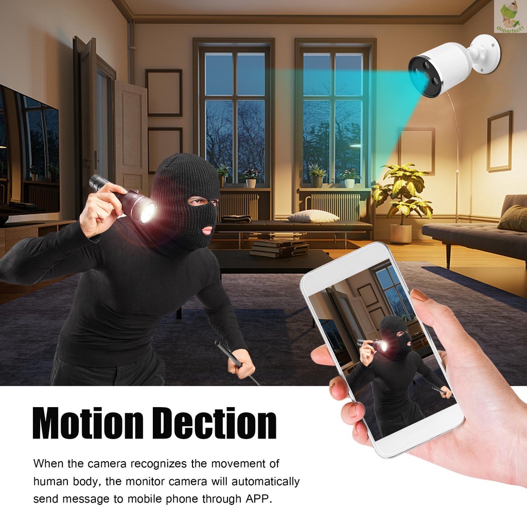 “ Chống nước & Đàm thoại hai chiều ” Thiết kế chống nước IP65, máy ảnh có hiệu suất tốt ngay cả khi sử dụng ngoài trời ” tích hợp micrô và loa. máy ảnh có thể xây dựng cuộc trò chuyện giữa bạn và khách của bạn , cũng rất thích hợp cho màn hình em bé, Vật nuôi đi cùng. chăm sóc người lớn tuổi , v.v .