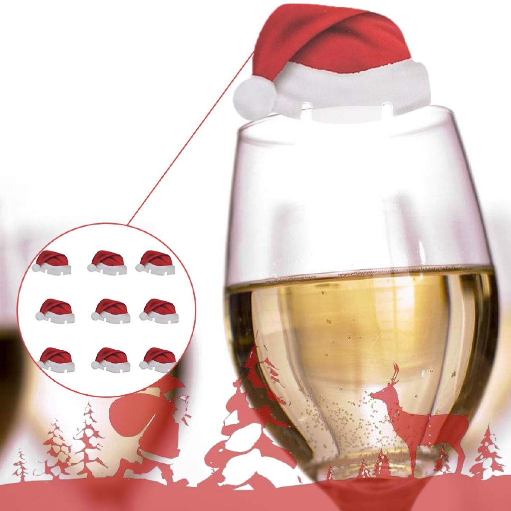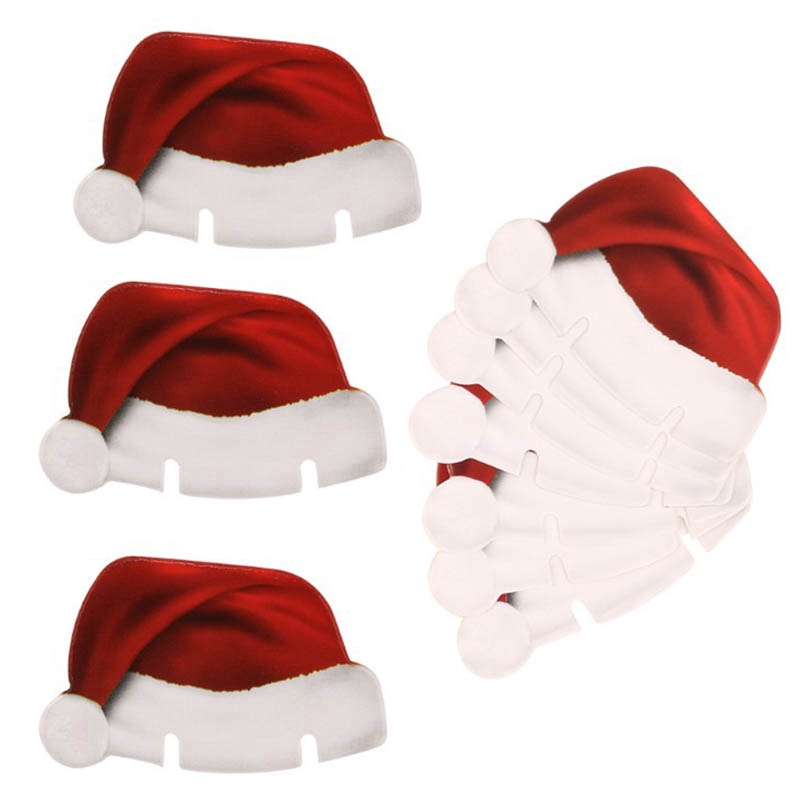 Giới thiệu 10PCS set Xmas Hats Champagne Wine Glass Caps Christmas DIY Decoration