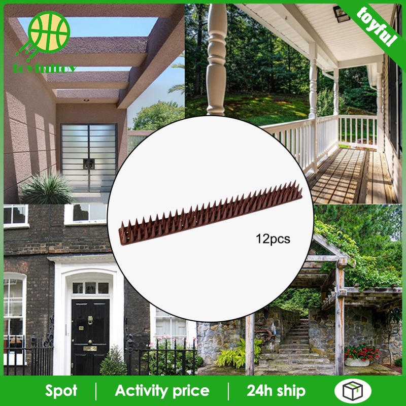 Description: Keep Intruders Away: Use plastic pigeon and crow spikes to replace the barbed wire or glass shards, only cause a physical stimulation, but won't cause serious harm to animals/humans. Install: Use nails/screws, double sided tape and strong zip ties to fix the animals deterrent on any flat surface, such as fences/ railings/roof/sheds/walls/gates/ledges, etc. ( These mounting accessories are not included) Weather Resistant: Our bird repellent spikes are made of high quality PP plastic, anti UV and any weather, won't rust as easily as metal and won't deform in strong sunlight. Size: length 43cm/17 inches width 4cm/1.6 inch height 3.5cm/ 1.4 inch What You Get: Set of 12 strips spikes, each strip spike length is 17 inches Package Includes: 12pcs Spikes