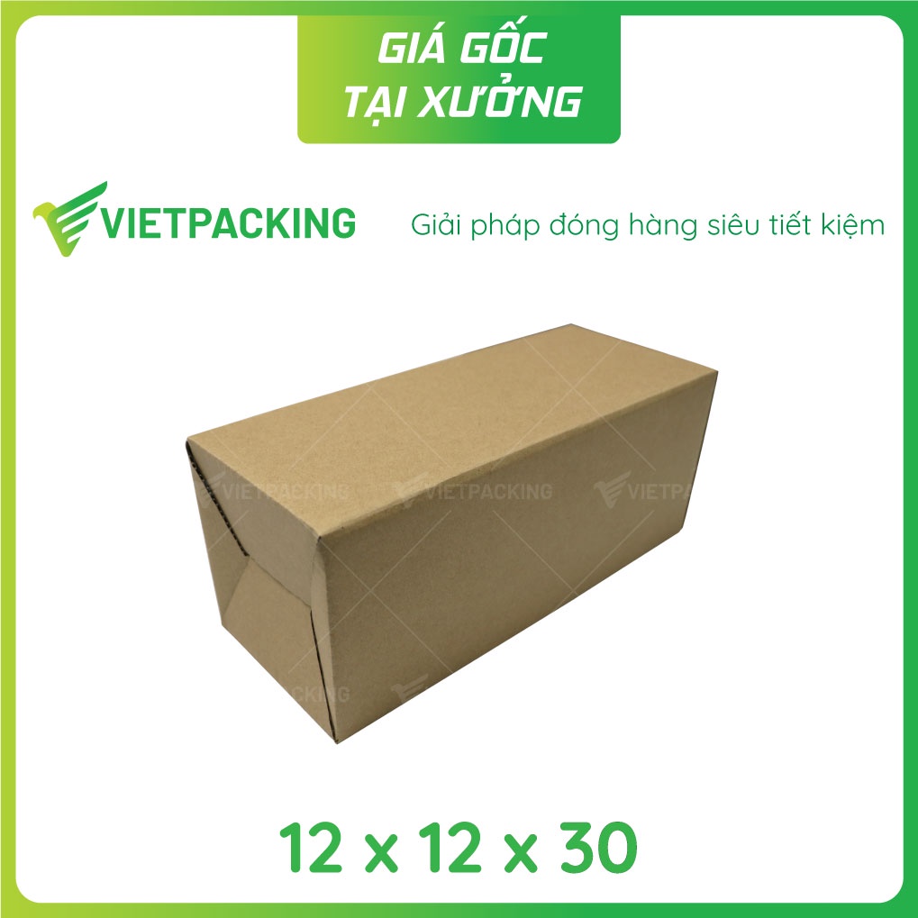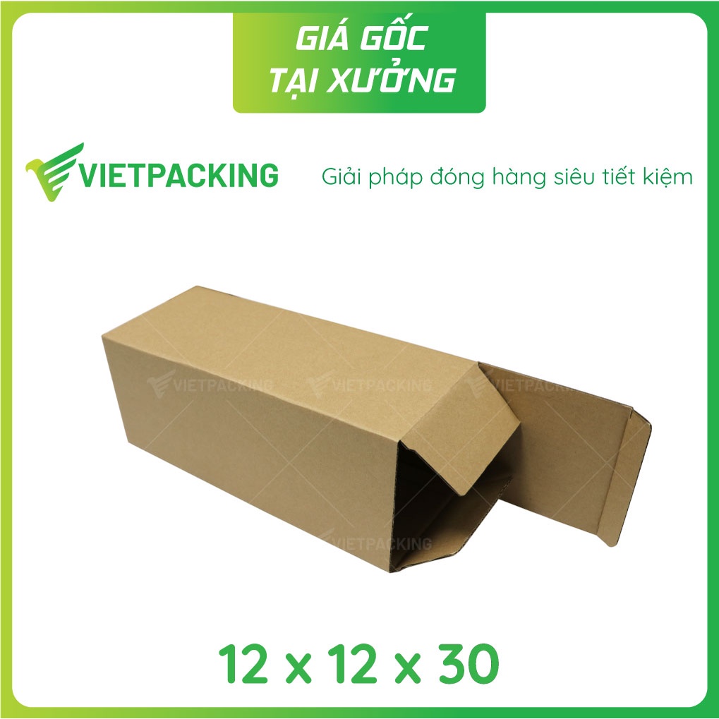 25 hộp carton đóng hàng 12x12x30 cm được xưởng bao bì Vietpacking sản xuất với giấy carton nâu. Định lượng chuẩn 125-115, sóng E. Giấy cứng, hộp đẹp vuông vức. Nguyên liệu giấy được nhập khẩu từ các nhà cung cấp uy tín (Thái Lan, Đài Loan, Malaysia) hoặc chọn nơi cung cấp tốt nhất trong nước như Giấy Sài Gòn, Chánh Dương.