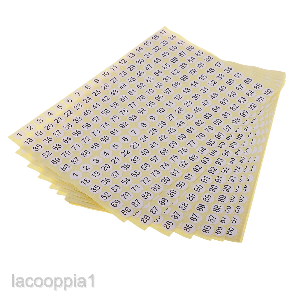 Đánh số từ 1 đến 102 được in trên miếng dán giấy tự dính Đường kính của mỗi miếng dán là 0.3 inch (10mm)