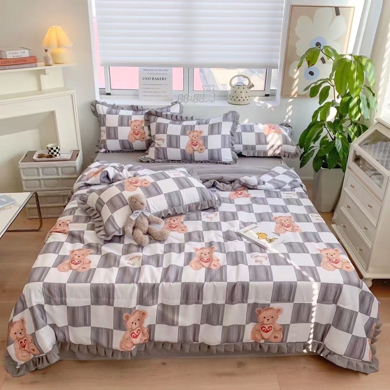 Giới thiệu (16 Màu) Set Chăn Ga Gối Đũi Bèo Ngắn 4 món - Set kèm chăn chần hè mềm mịn mát