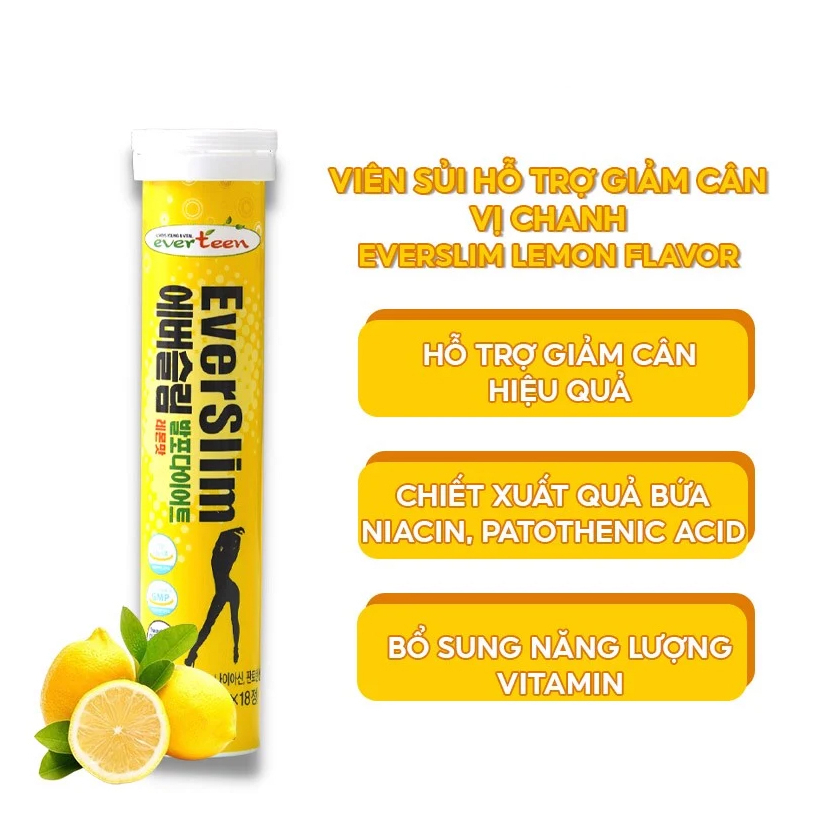 Giới thiệu [18 Viên] Viên Sủi Hỗ Trợ Giảm Cân Vị Chanh EverSlim Lemon Flavor