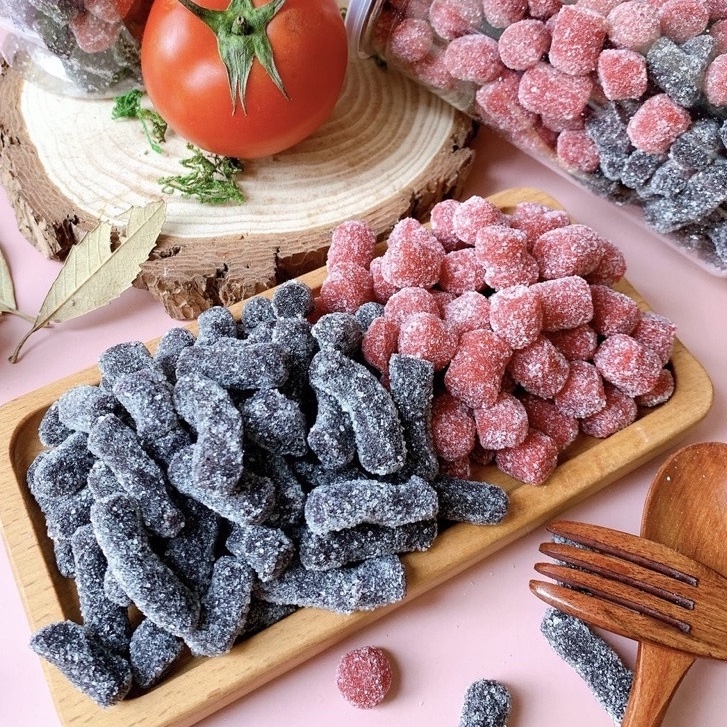 Kẹo dâu mix 2 vị được chế biến từ những trái dâu tằm và dâu tây chín mọng, có màu sắc bắt mắt. Sự hòa quyện giữa trái dâu và ngào đường tạo nên món kẹo làm mê mẩn nhiều người, đặc biệt là các bạn nhỏ. Đây không chỉ là món ăn vặt được người lớn yêu thích mà trẻ em cũng vậy. Bảo quản: Để nơi khô ráo, thoáng mát, tránh ánh nắng mặt trời trực tiếp. Xuất xứ : Đà Lạt HSD : 6 tháng Quy cách: - 500g/túi zip - 500g/hủ pet