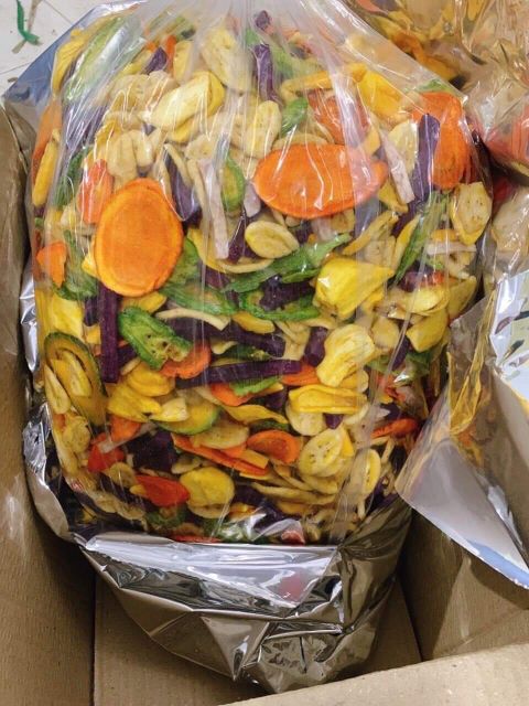 Thập cẩm rau củ quả sấy hàng xá chuẩn vinamit nhé, đảm bảo chất lượng, thơm ngon, giòn vị đặc trưng của mỗi loại. Bao gồm mít, chuối, khoai vàng, khoai tím, khoai môn, cà rốt, khổ qua Ngon xuất sắc luôn nhé Xuất xứ :Bình Dương - Việt Nam Quy cách đóng gói :túi zip bạc 500gr x2 Hsd 6 tháng