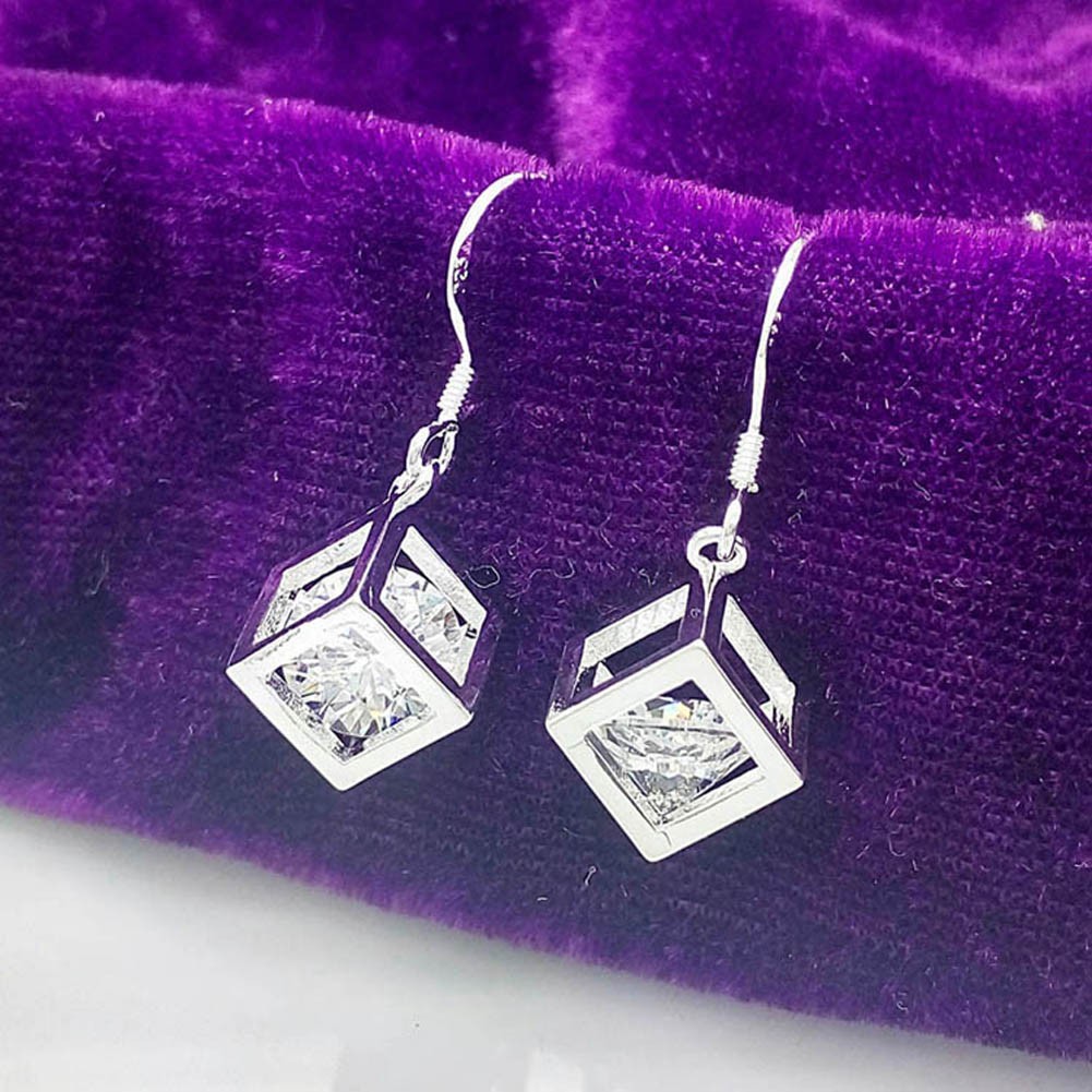 Phụ Kiện & Trang Sức Nữ > Bông tai > 1pair Earring Crystal Cube Shape Earrings